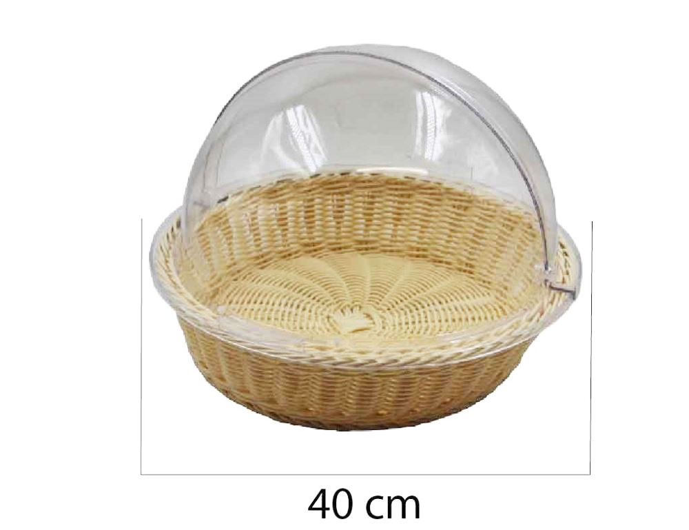 This stylish basket and cover combination ensures that your display of bread, cakes, fruit etc. are kept in a safe hygienic condition by stopping flying insects landing on the food which renders the product more attractive to your customers thus increasing sales and profits.