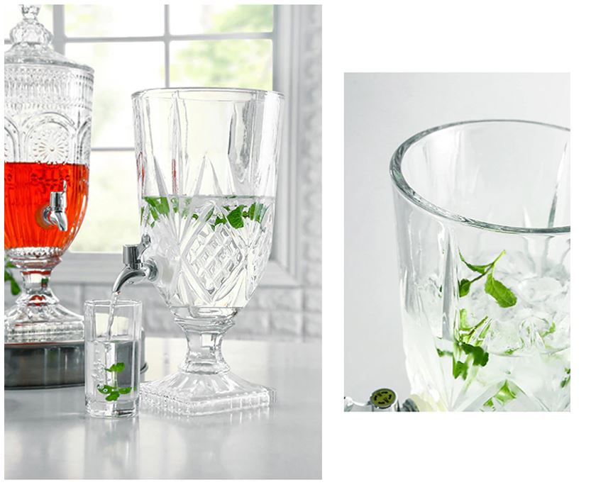 Enjoy your beverages in the most comfortable and stylish 100% lead-free beverage dispenser. Made of glass enabling the Color of the beverage to shine. Screw Lid Spigot in Metal Caddy with Handle. Elegant looks and adds to any table’s aesthetics with its contemporary design. Why choose a glass over plastic? it allows you to Sip colder and more pure-tasting water, looks sleek and elegant, and is thicker and sturdier than plastic. Glass is made from all-natural, sustainable raw materials, is 100% recyclable. Depending on the theme you will find a use for them. They make great gifts for any occasion. These are perfect for Christmas, birthday gifts, wedding party, your best selling beverage, Valentine’s day, anniversary, Father’s day, Mother’s day, housewarming, cyber Monday and Black Friday Sale gifts, new years, college graduation, St. Patrick’s day, congratulations, job promotion, stocking stuffers and secret Santa gifts!