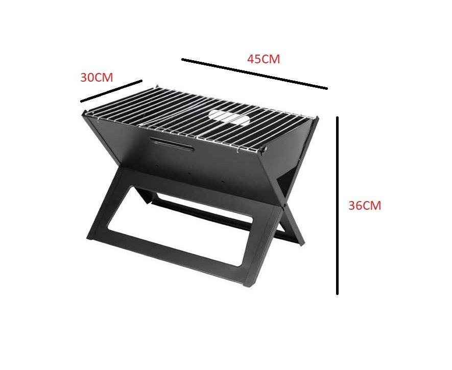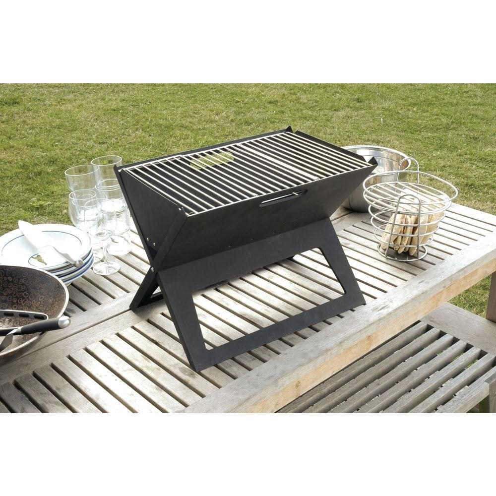 We are pleased to offer the finest design and quality in the Portable Charcoal Grill. The Notebook Folding Grill is the ideal table top BBQ grill. The clever design allows this outdoor small grill to stand 14.18 inches for use and then fold flat to 1 inch for easy transportation.