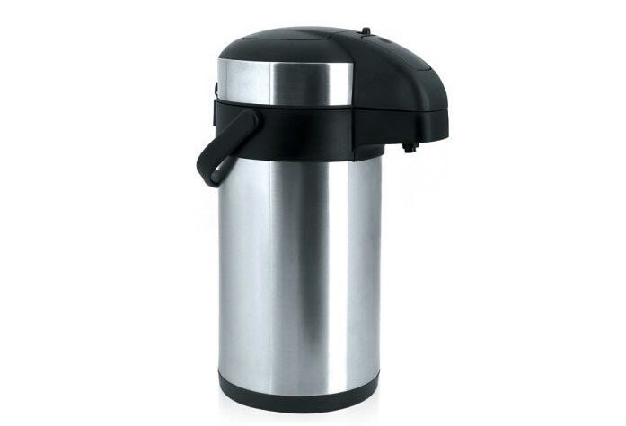 The flask has a large pump action button on top to dispense the beverage with ease and is ideal for most ages to pour, as you don’t have to pick it up. The elegant Stainless Steel design is durable, long lasting and comes with a handle for carrying.